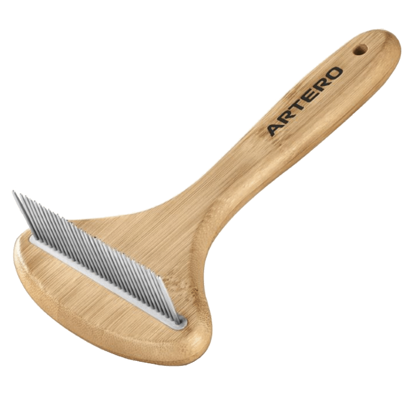 Mit 20 Zinken ist er darauf ausgelegt, eingeklemmte abgestorbene Haare schonend aus dem Fell zu lösen und lose Unterwolle gründlich herauszuarbeiten. Damit ist er ein starkes Tool für die regelmäßige Fellpflege und besonders interessant im Fellwechsel